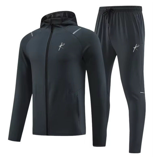 Graphite activewear tracksuit from Rico, finished with the brands logo printed on the chest and leg.